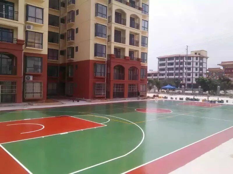 蘄春縣蘄州鎮硅PU籃球場完工,深圳北站丙烯酸材料進場
